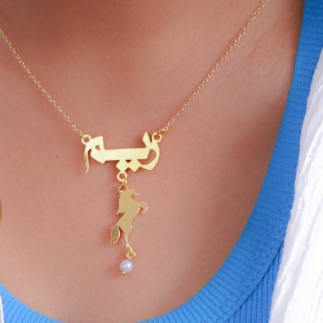 سلسال بالاسم مع الخيل جودة ممتازة مرتبه تصميم انيق جدا وجميل تصميم بالون ذهبي او فضي حسب الطلب العملاء